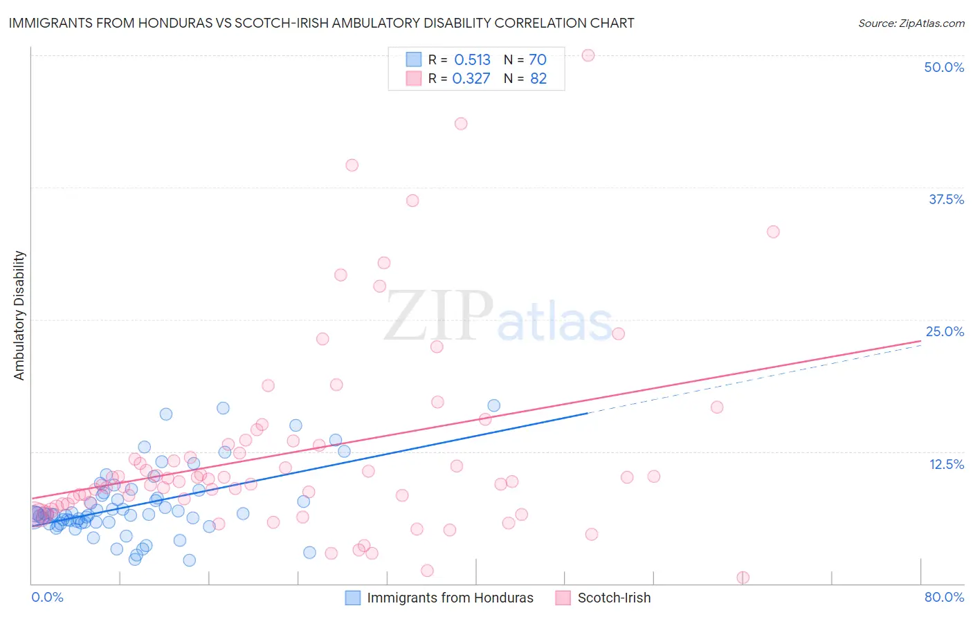 Immigrants from Honduras vs Scotch-Irish Ambulatory Disability Correlation Chart