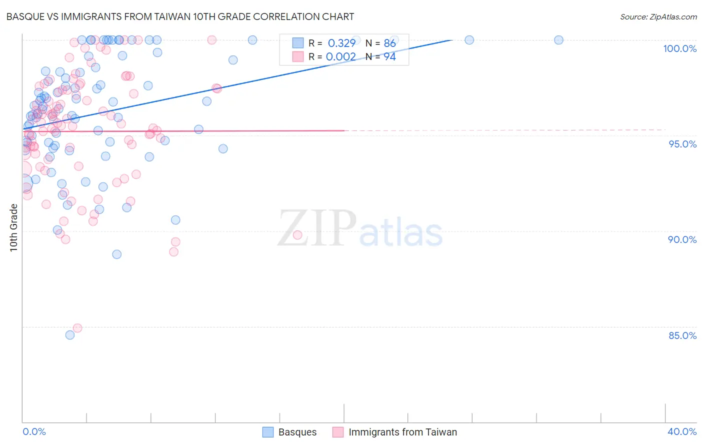Basque vs Immigrants from Taiwan 10th Grade Correlation Chart