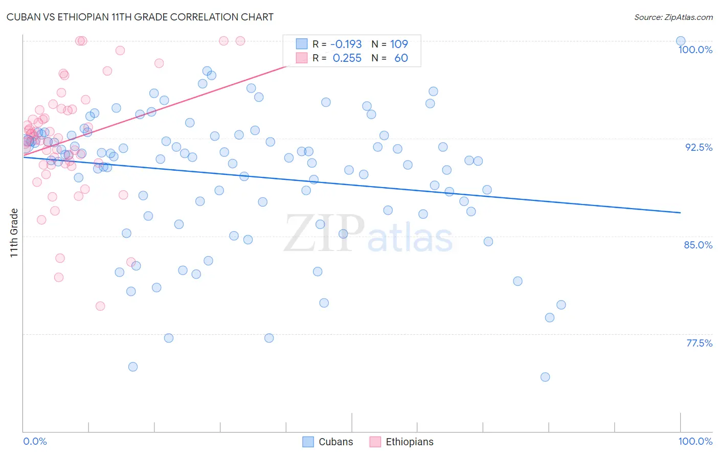 Cuban vs Ethiopian 11th Grade Correlation Chart