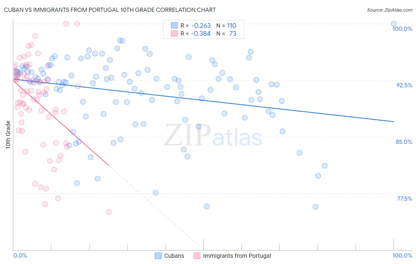 Cuban vs Immigrants from Portugal 10th Grade Correlation Chart