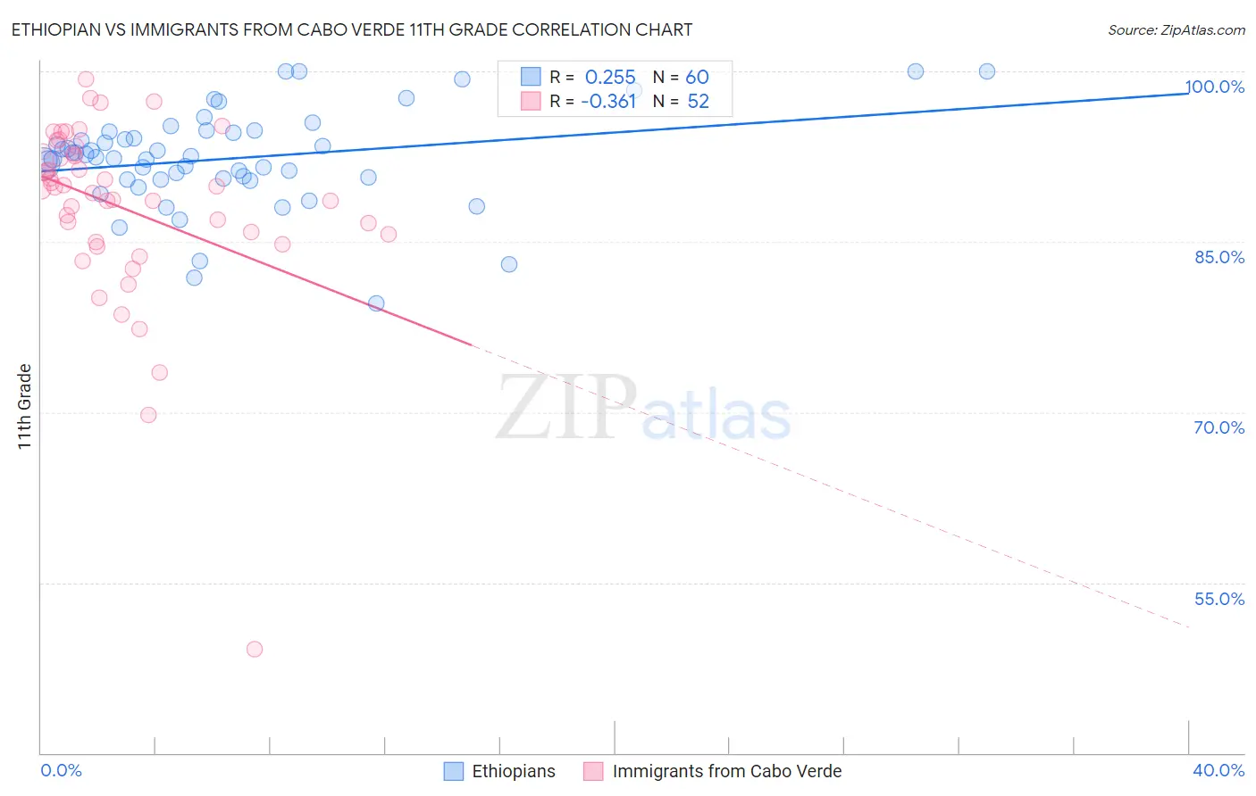 Ethiopian vs Immigrants from Cabo Verde 11th Grade Correlation Chart