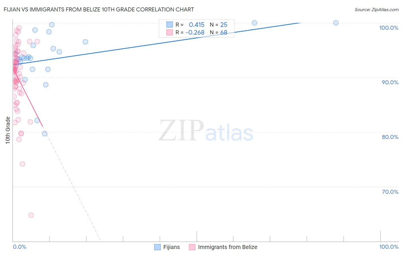 Fijian vs Immigrants from Belize 10th Grade Correlation Chart