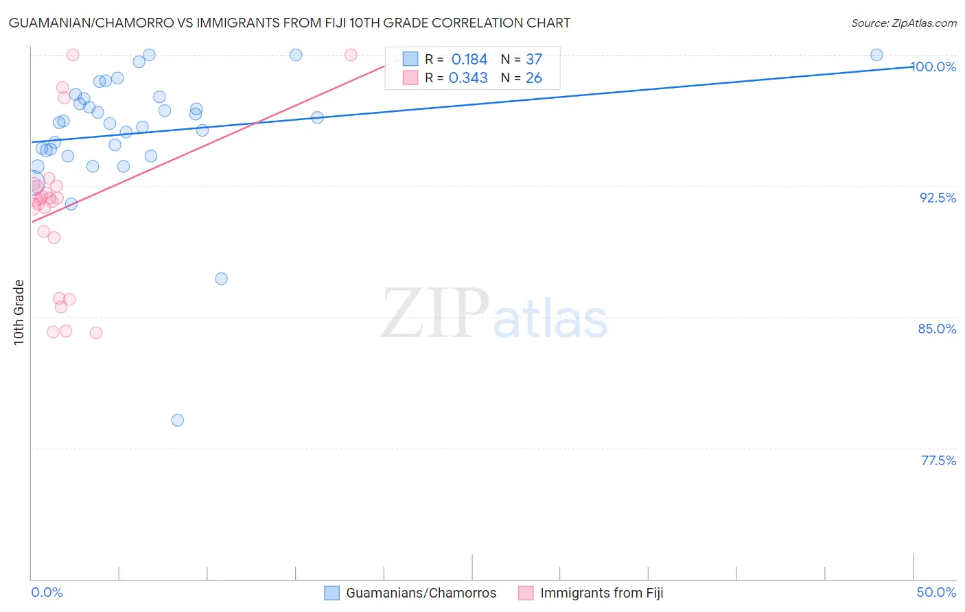 Guamanian/Chamorro vs Immigrants from Fiji 10th Grade Correlation Chart