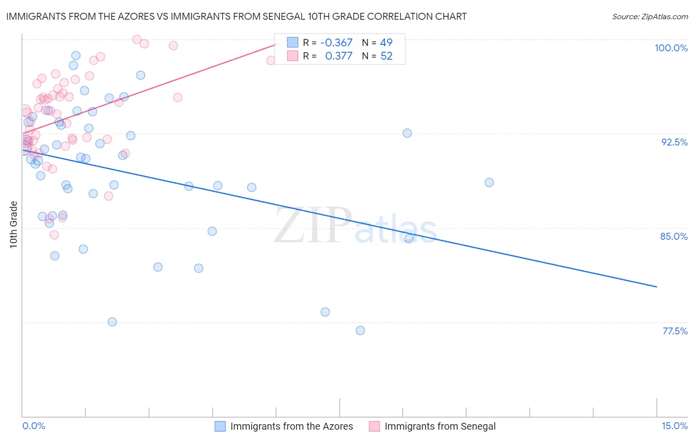 Immigrants from the Azores vs Immigrants from Senegal 10th Grade Correlation Chart
