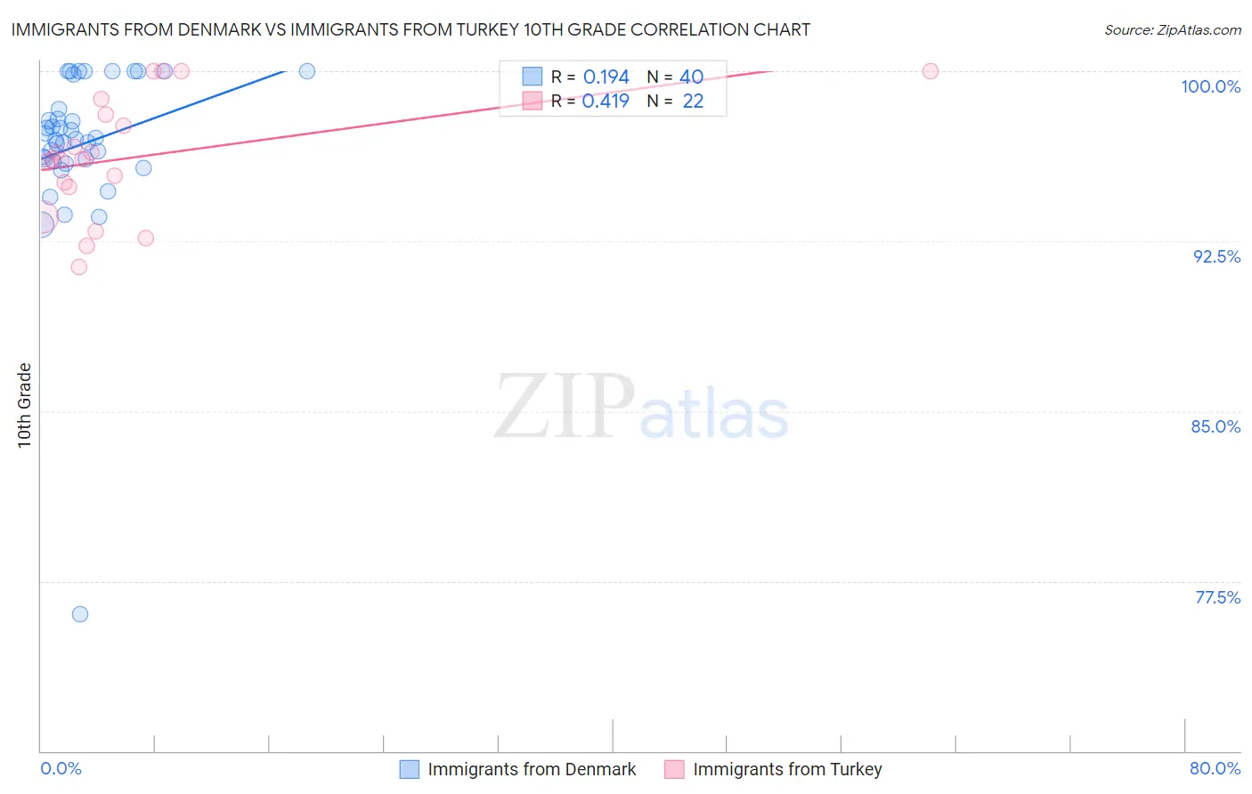 Immigrants from Denmark vs Immigrants from Turkey 10th Grade Correlation Chart