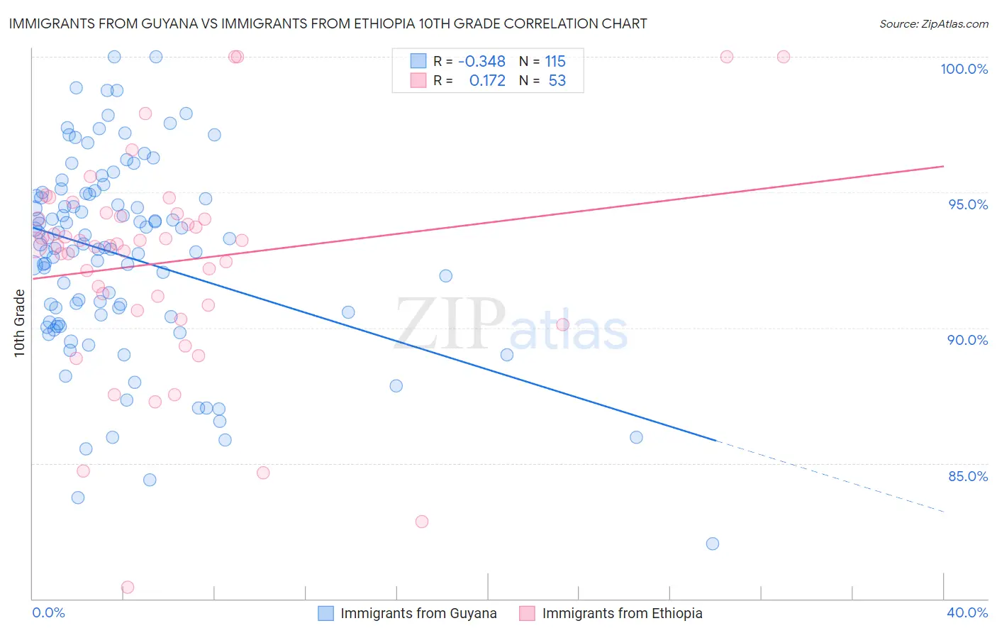 Immigrants from Guyana vs Immigrants from Ethiopia 10th Grade Correlation Chart
