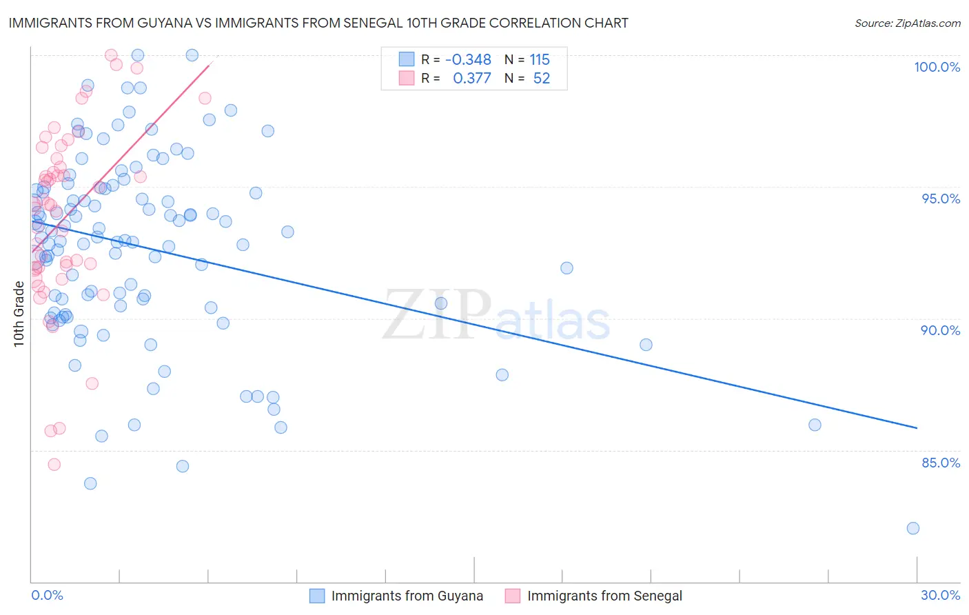 Immigrants from Guyana vs Immigrants from Senegal 10th Grade Correlation Chart