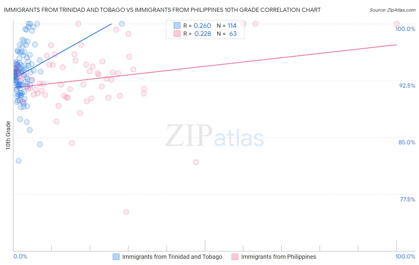 Immigrants from Trinidad and Tobago vs Immigrants from Philippines 10th Grade Correlation Chart