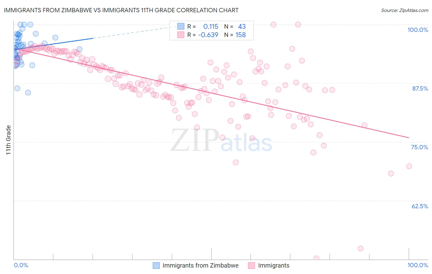 Immigrants from Zimbabwe vs Immigrants 11th Grade Correlation Chart
