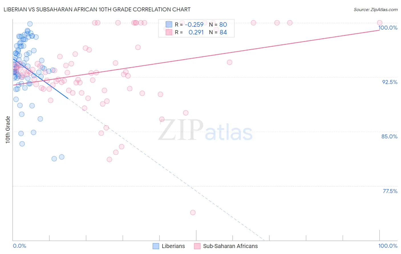 Liberian vs Subsaharan African 10th Grade Correlation Chart