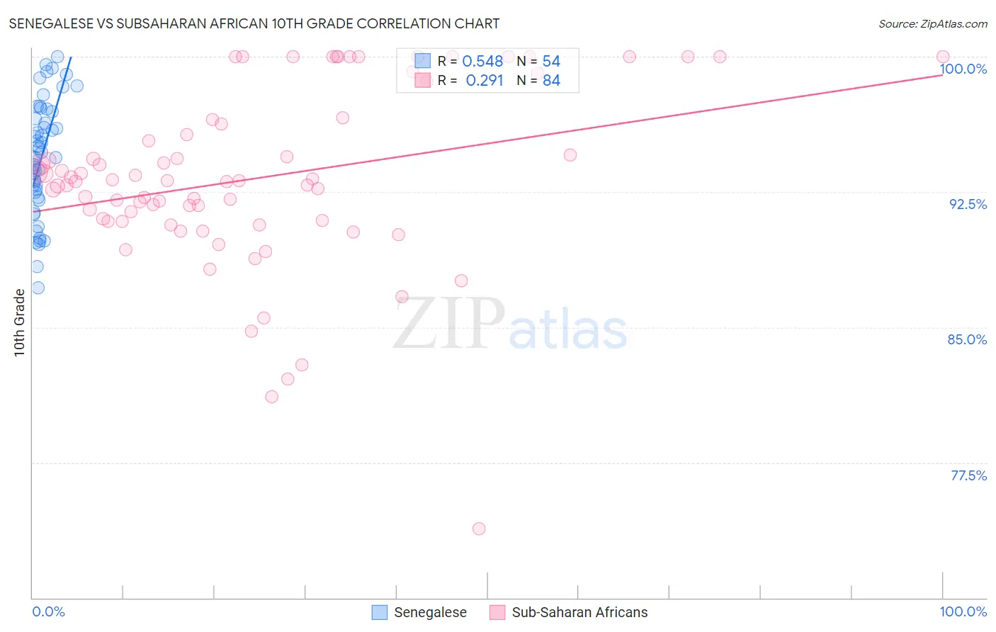 Senegalese vs Subsaharan African 10th Grade Correlation Chart