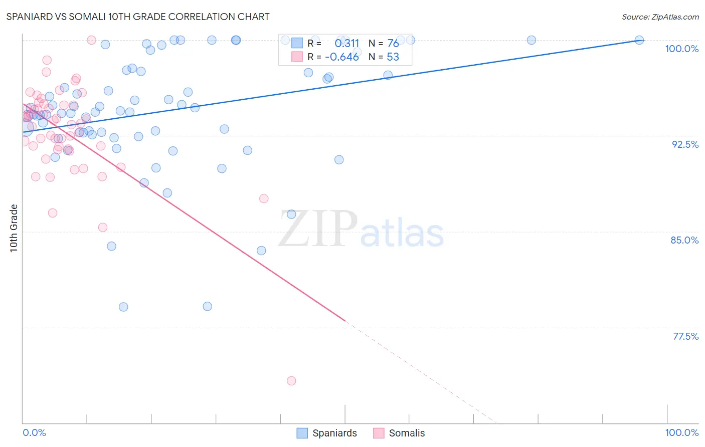 Spaniard vs Somali 10th Grade Correlation Chart