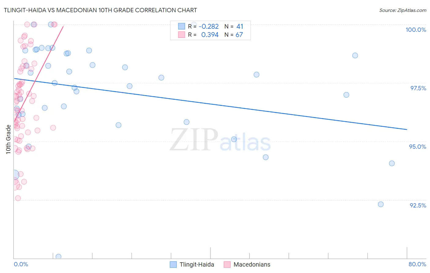 Tlingit-Haida vs Macedonian 10th Grade Correlation Chart