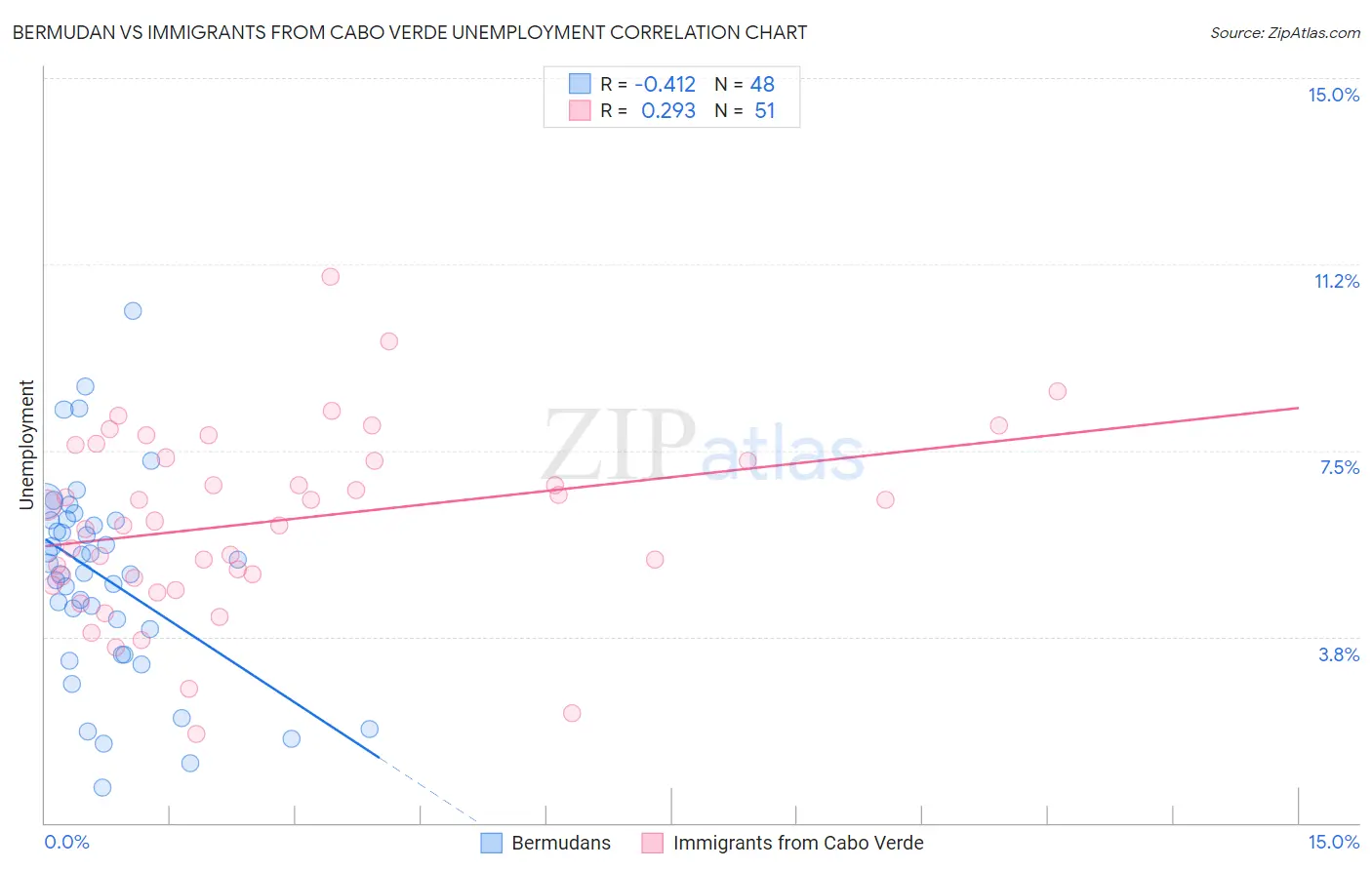 Bermudan vs Immigrants from Cabo Verde Unemployment Correlation Chart