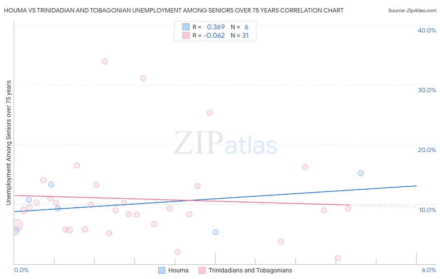 Houma vs Trinidadian and Tobagonian Unemployment Among Seniors over 75 years Correlation Chart