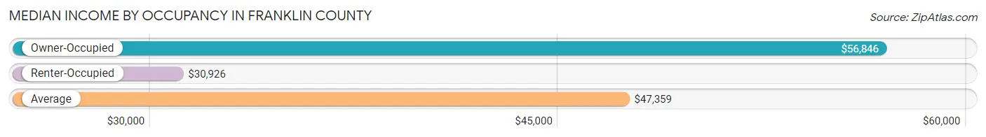 Per Capita Income in Franklin County is $24,874, while median incomes of families and households are $61,857 and $47,359 respectively.
