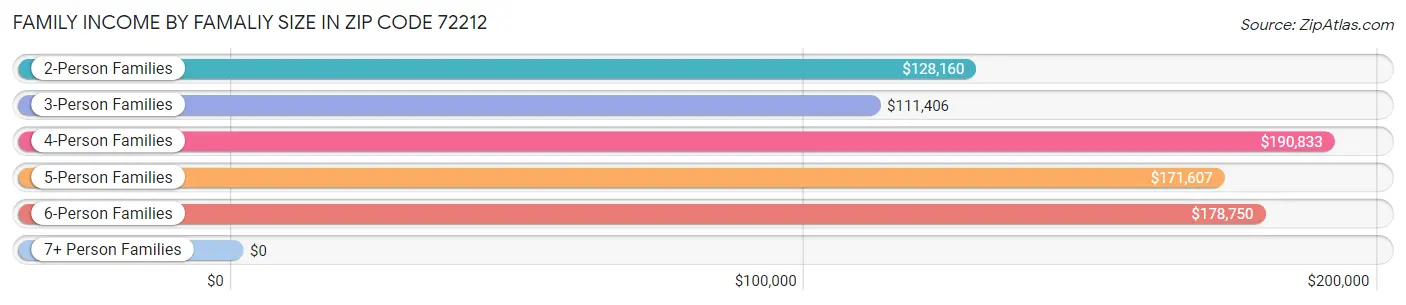Per Capita Income in Zip Code 72212 is $61,702, while median incomes of families and households are $142,727 and $111,735 respectively.
