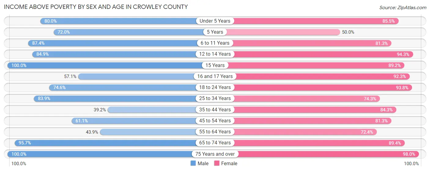 The median household income in Crowley County was $45,945, and the median family income was $51,917. The per capita income was $20,945. About 11.3% of the population was below the poverty line.