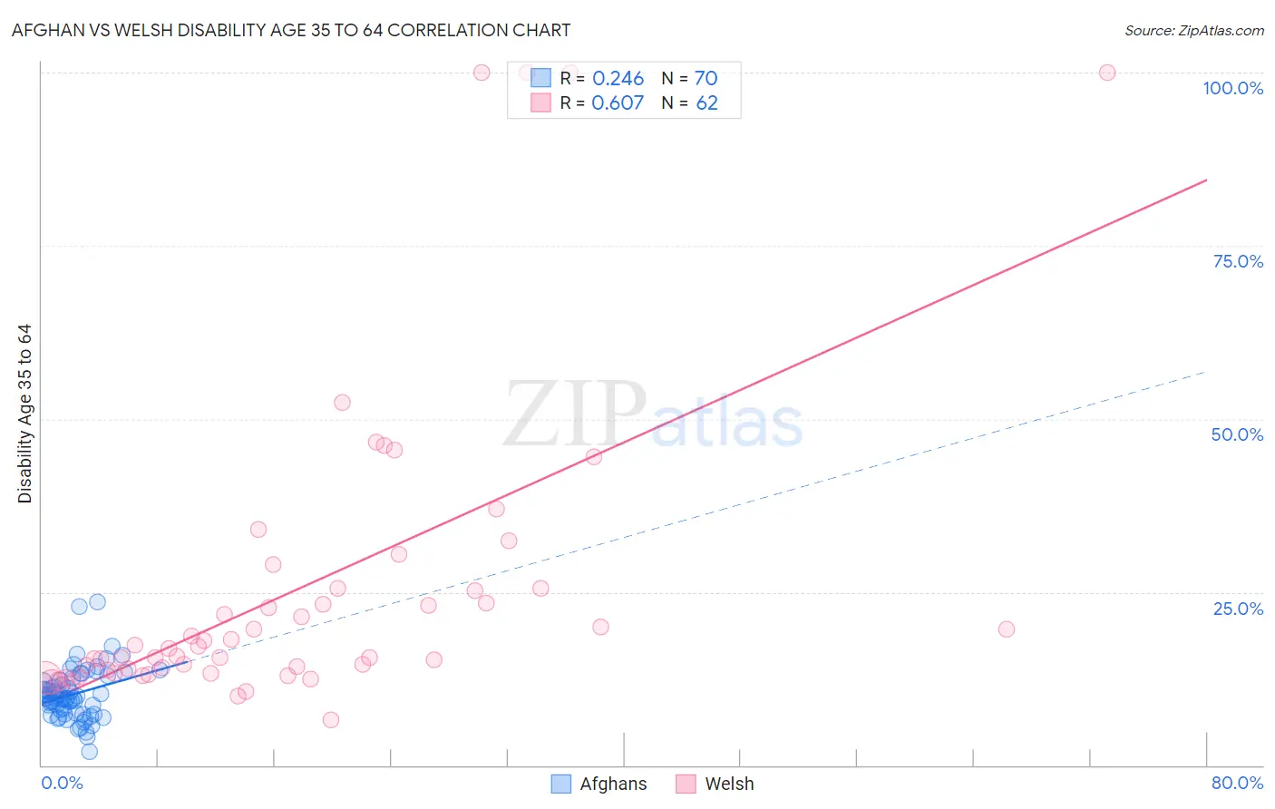 Afghan vs Welsh Disability Age 35 to 64 Correlation Chart