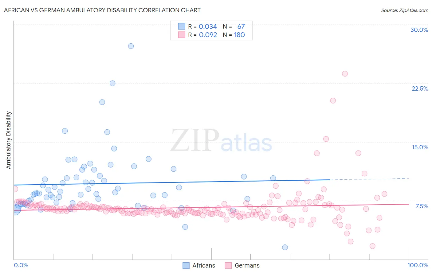 African vs German Ambulatory Disability Correlation Chart