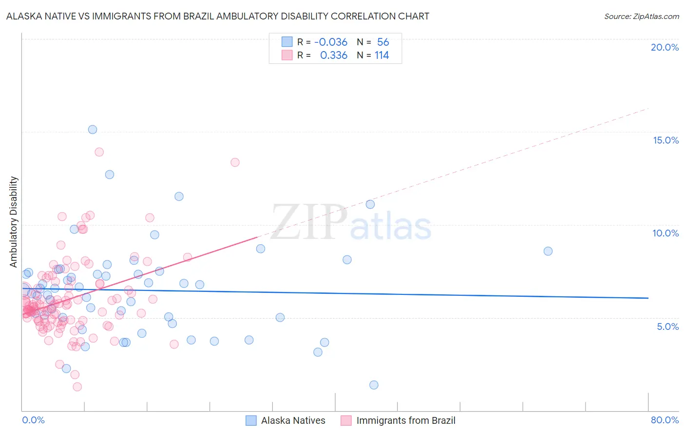 Alaska Native vs Immigrants from Brazil Ambulatory Disability Correlation Chart