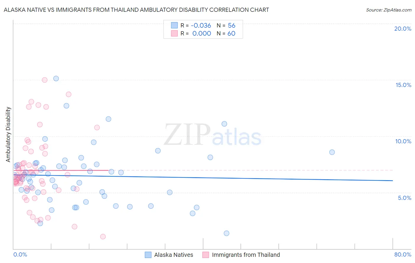 Alaska Native vs Immigrants from Thailand Ambulatory Disability Correlation Chart