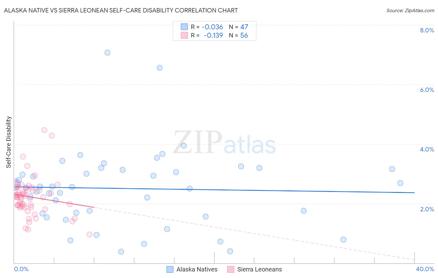 Alaska Native vs Sierra Leonean Self-Care Disability Correlation Chart