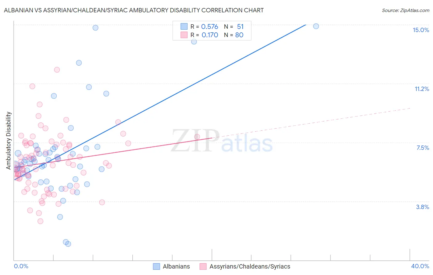 Albanian vs Assyrian/Chaldean/Syriac Ambulatory Disability Correlation Chart