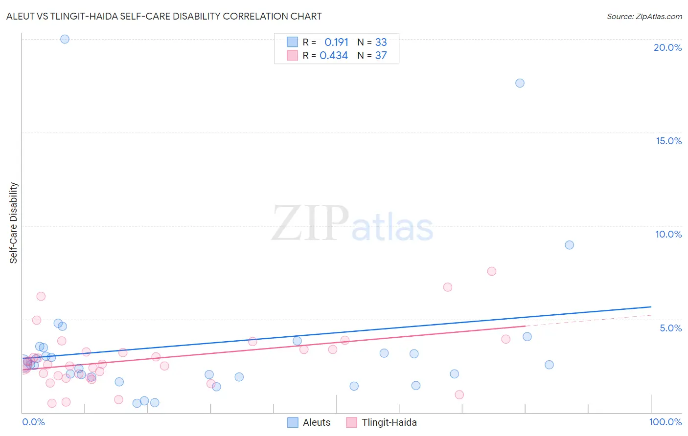 Aleut vs Tlingit-Haida Self-Care Disability Correlation Chart