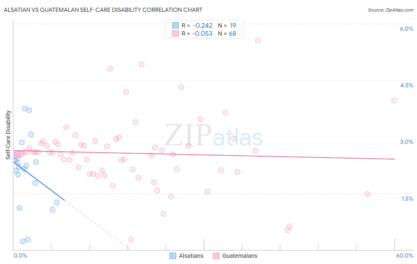 Alsatian vs Guatemalan Self-Care Disability Correlation Chart
