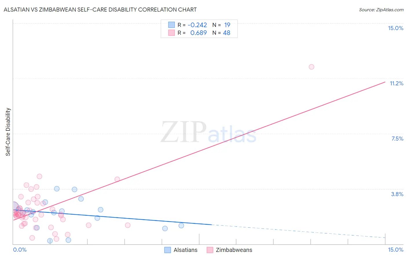Alsatian vs Zimbabwean Self-Care Disability Correlation Chart