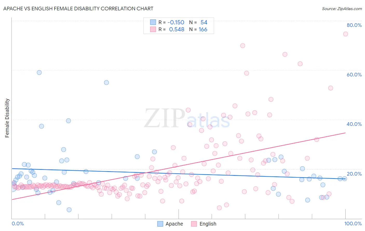 Apache vs English Female Disability Correlation Chart