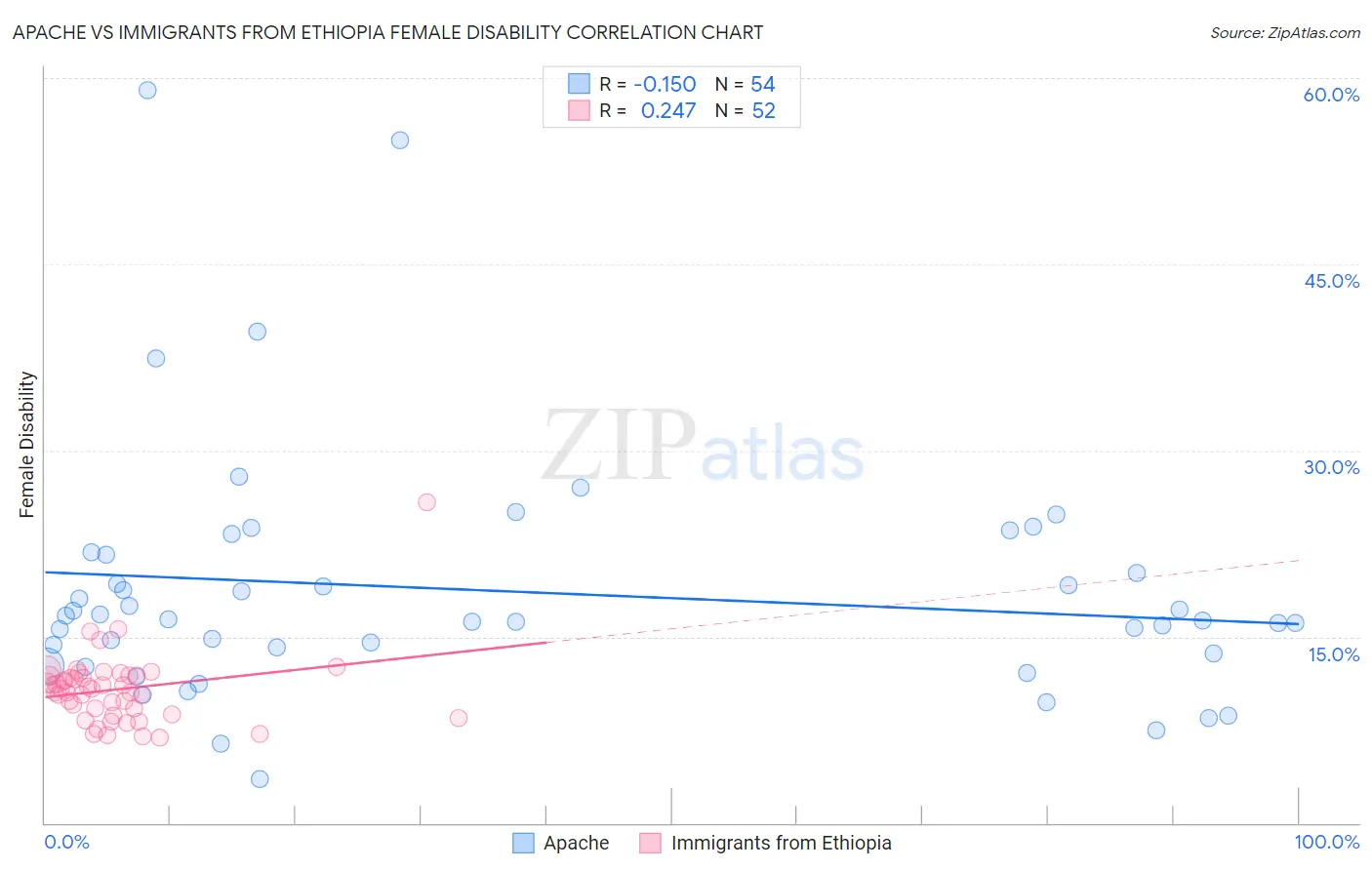 Apache vs Immigrants from Ethiopia Female Disability Correlation Chart