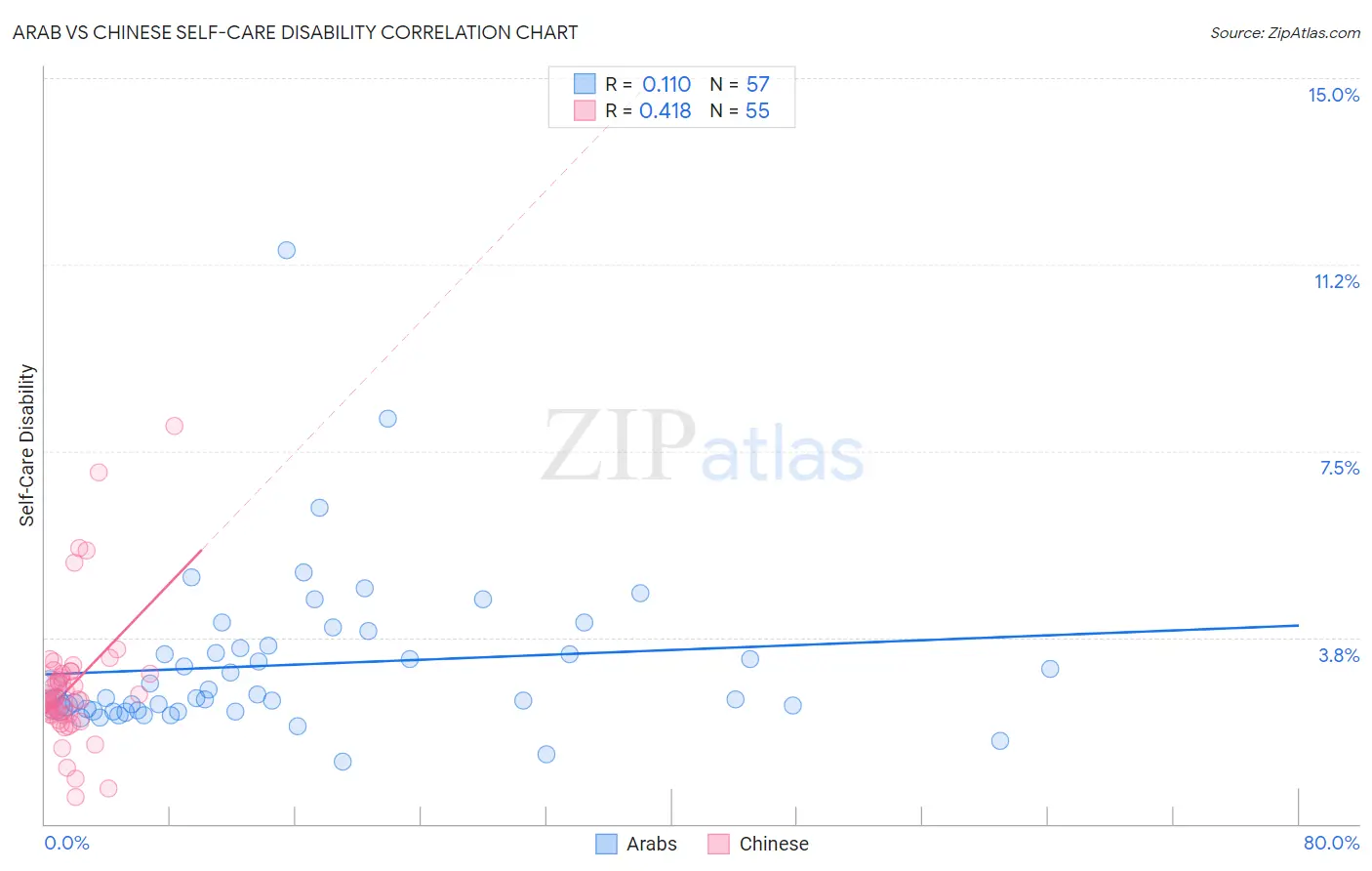 Arab vs Chinese Self-Care Disability Correlation Chart
