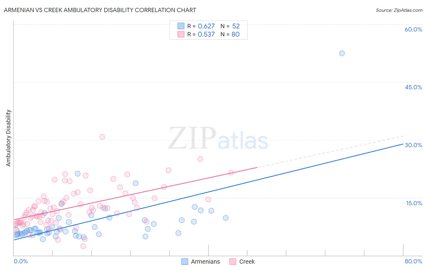 Armenian vs Creek Ambulatory Disability Correlation Chart