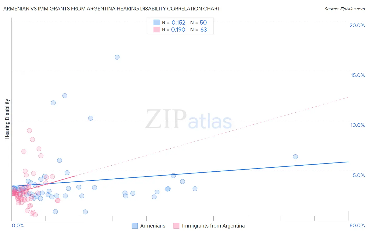 Armenian vs Immigrants from Argentina Hearing Disability Correlation Chart
