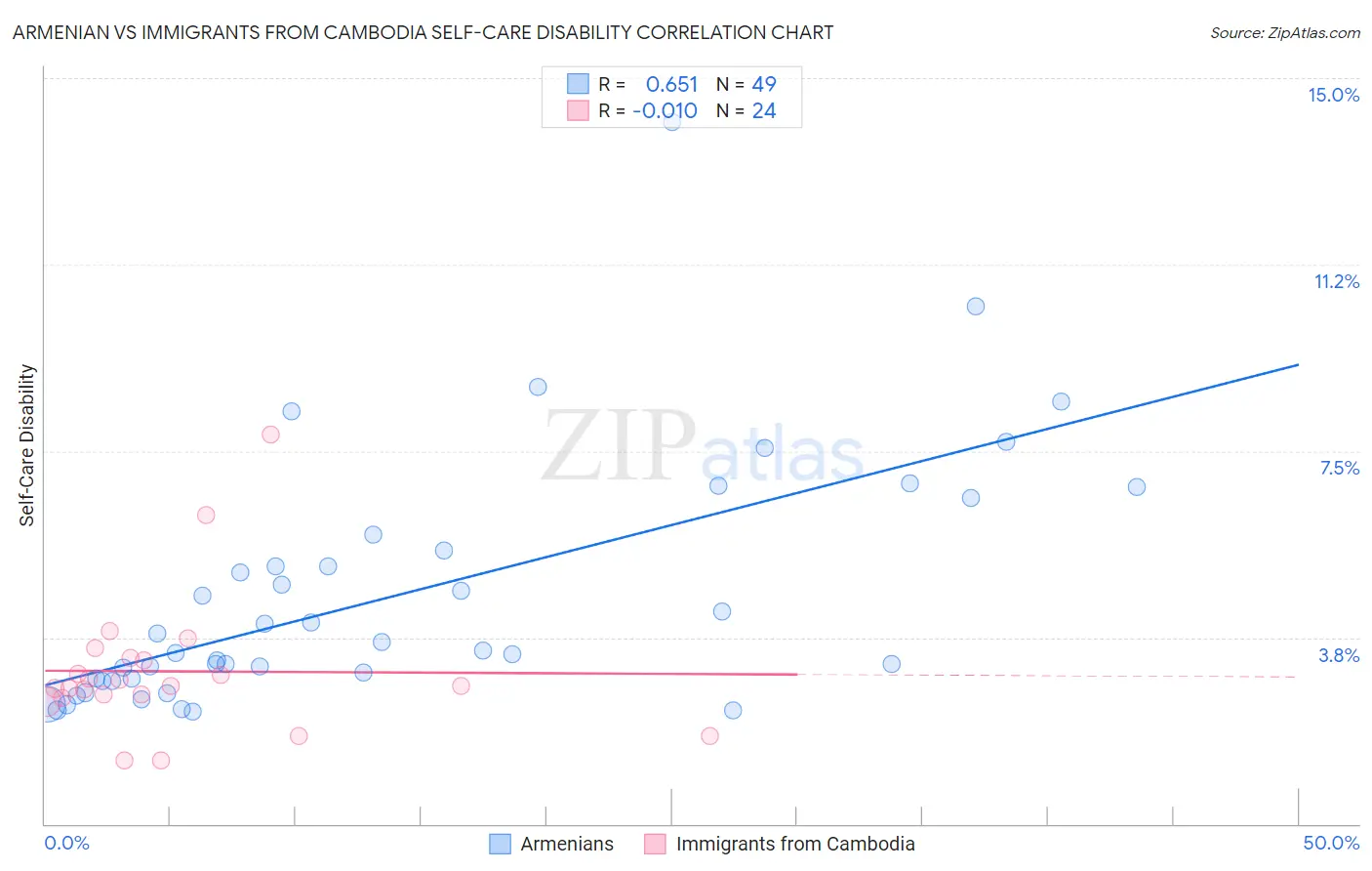 Armenian vs Immigrants from Cambodia Self-Care Disability Correlation Chart