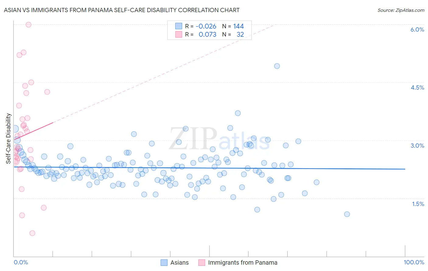 Asian vs Immigrants from Panama Self-Care Disability Correlation Chart