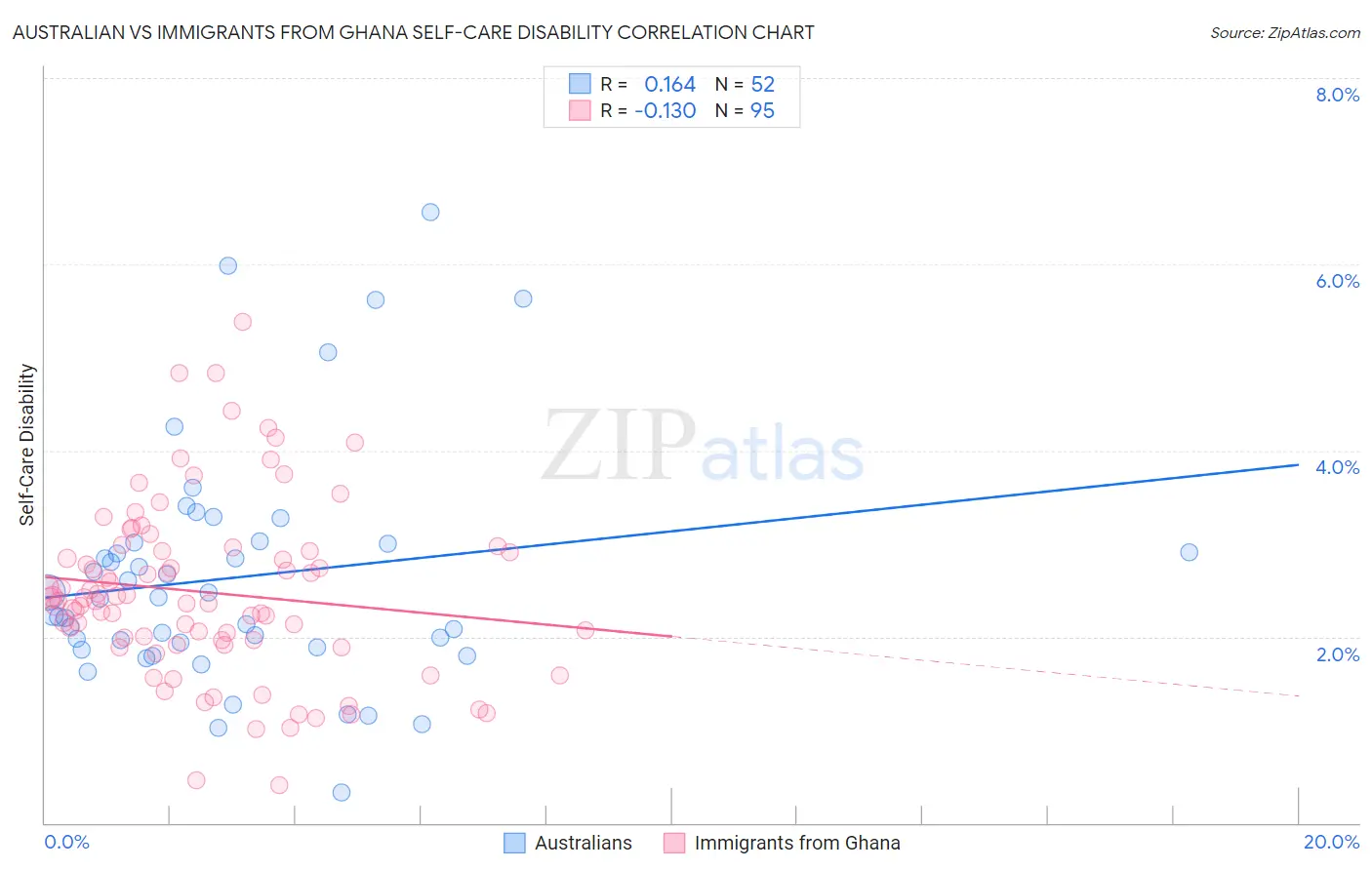 Australian vs Immigrants from Ghana Self-Care Disability Correlation Chart
