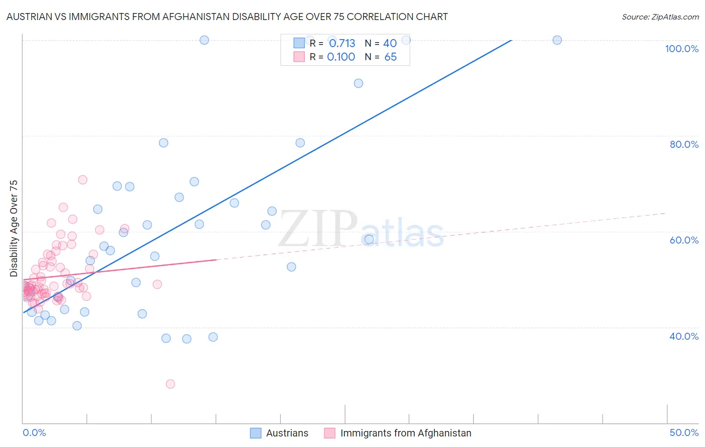 Austrian vs Immigrants from Afghanistan Disability Age Over 75 Correlation Chart
