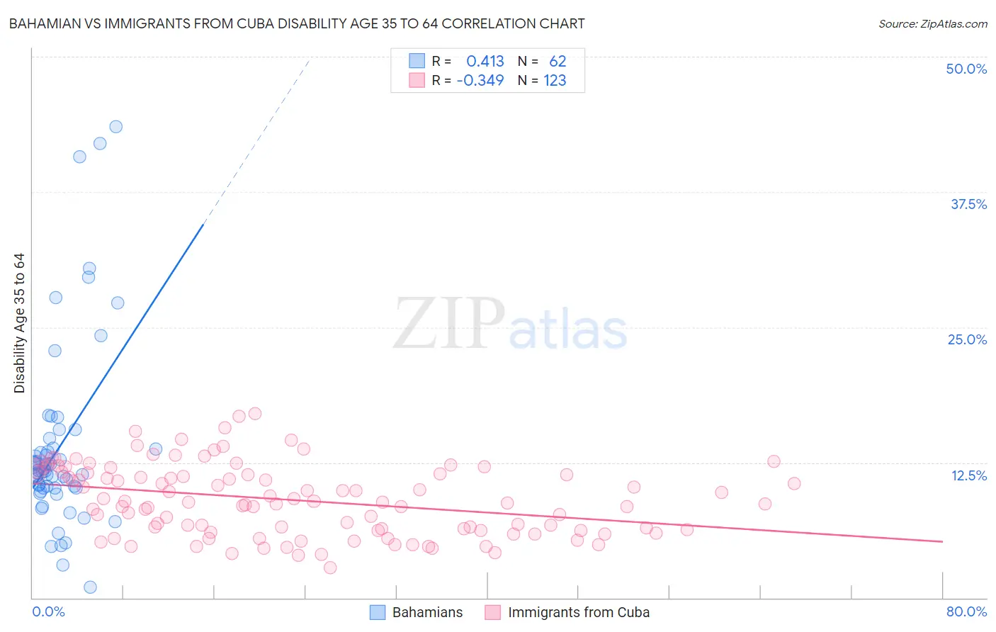 Bahamian vs Immigrants from Cuba Disability Age 35 to 64