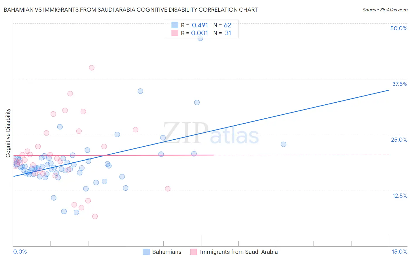 Bahamian vs Immigrants from Saudi Arabia Cognitive Disability Correlation Chart
