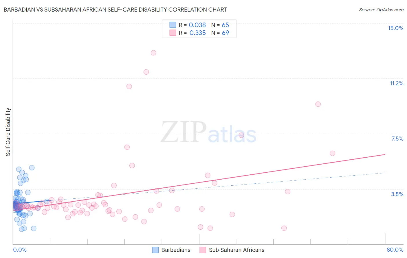 Barbadian vs Subsaharan African Self-Care Disability Correlation Chart