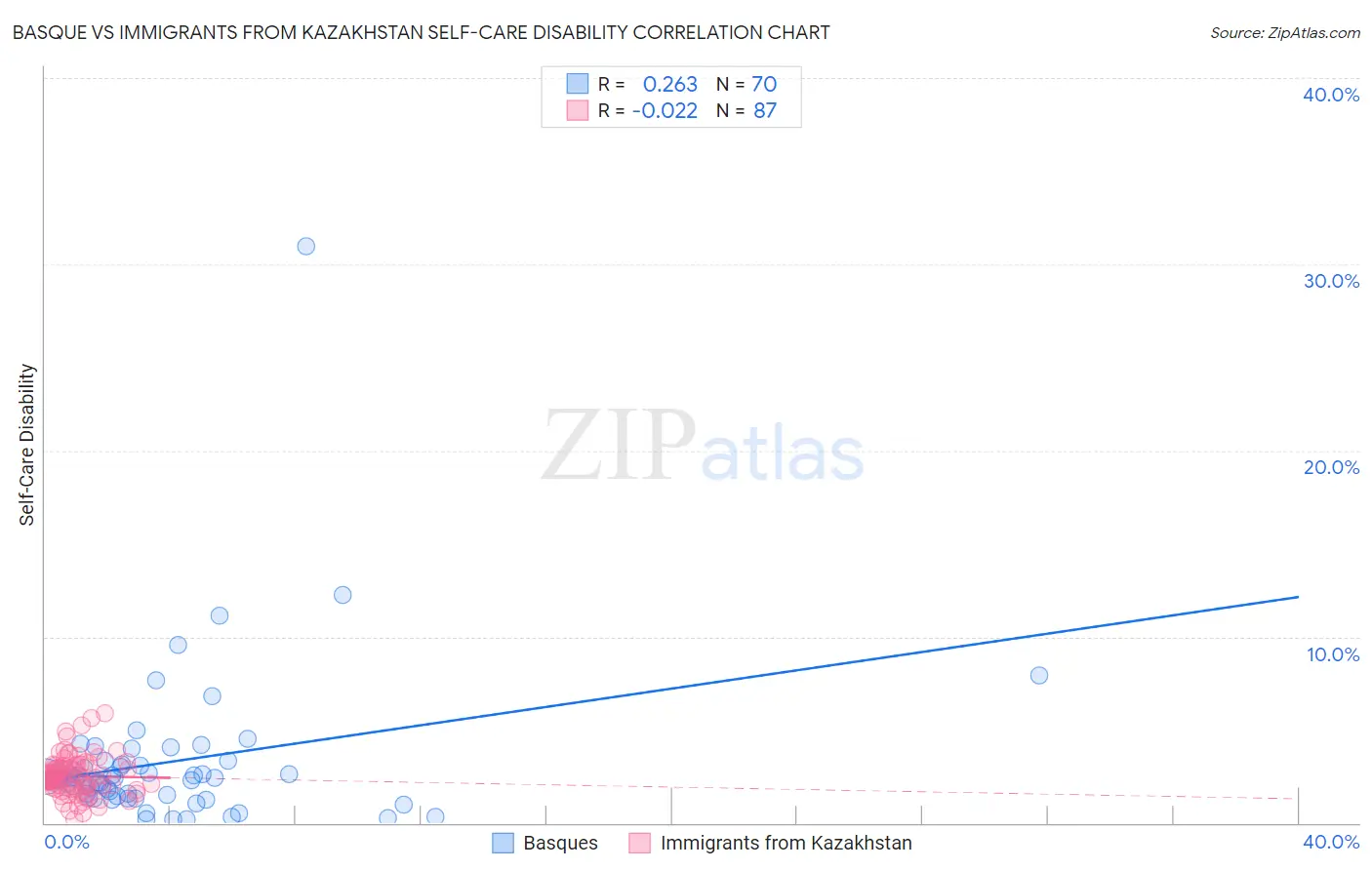Basque vs Immigrants from Kazakhstan Self-Care Disability Correlation Chart