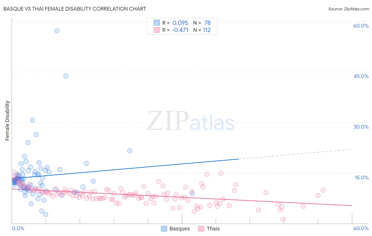 Basque vs Thai Female Disability Correlation Chart