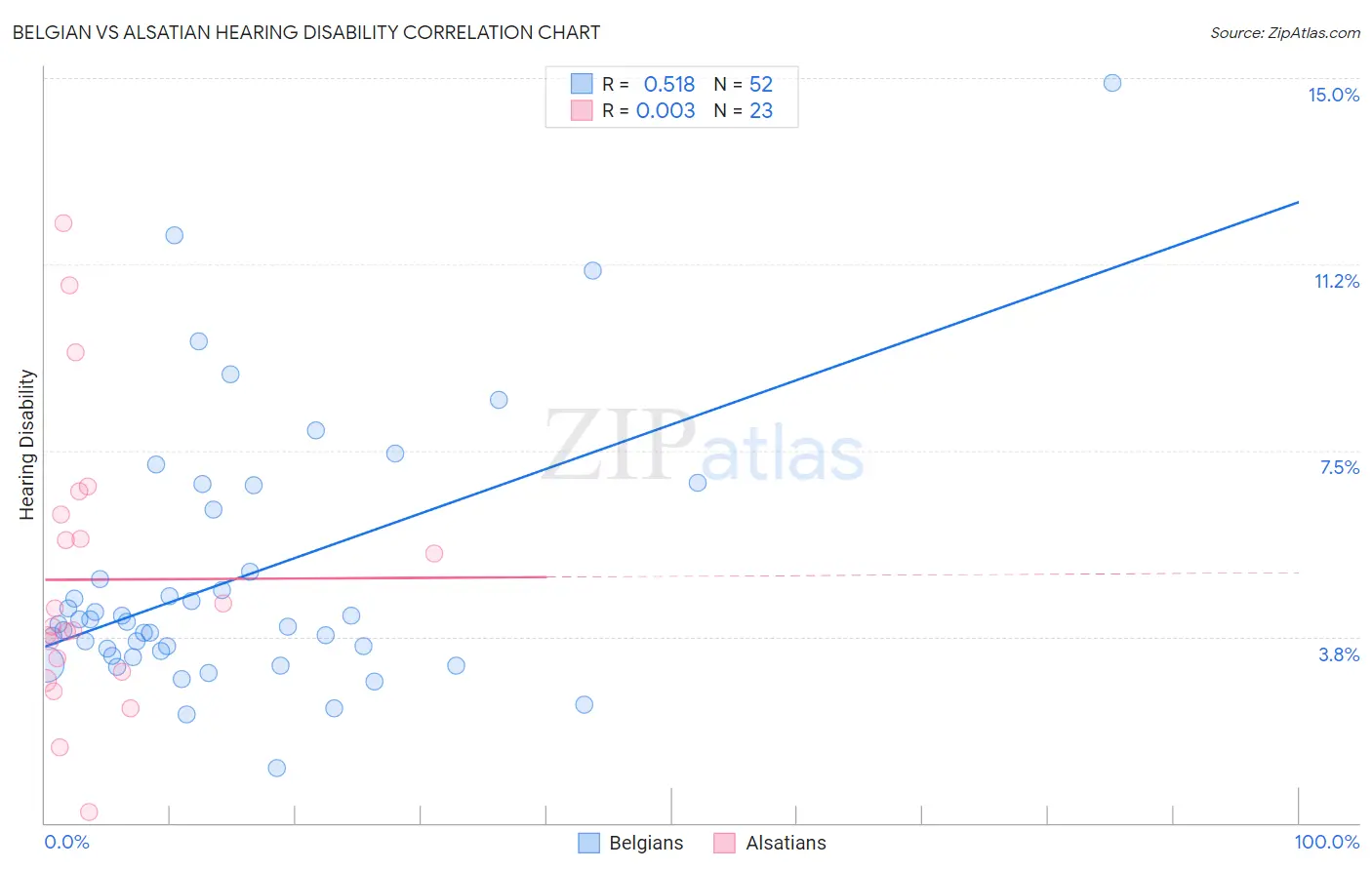 Belgian vs Alsatian Hearing Disability Correlation Chart