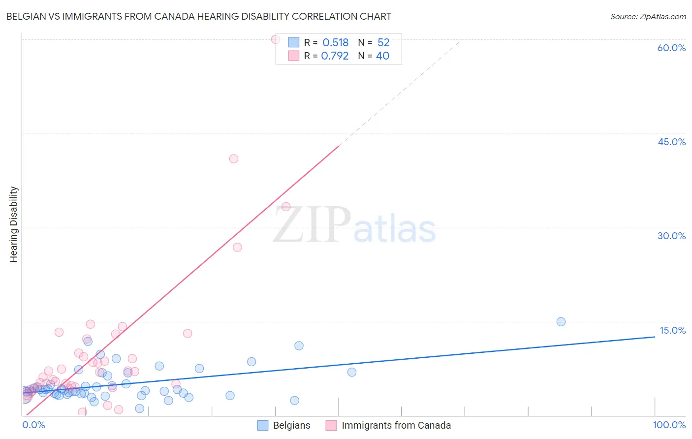 Belgian vs Immigrants from Canada Hearing Disability Correlation Chart