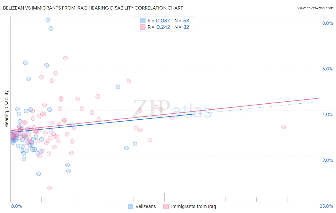 Belizean vs Immigrants from Iraq Hearing Disability Correlation Chart