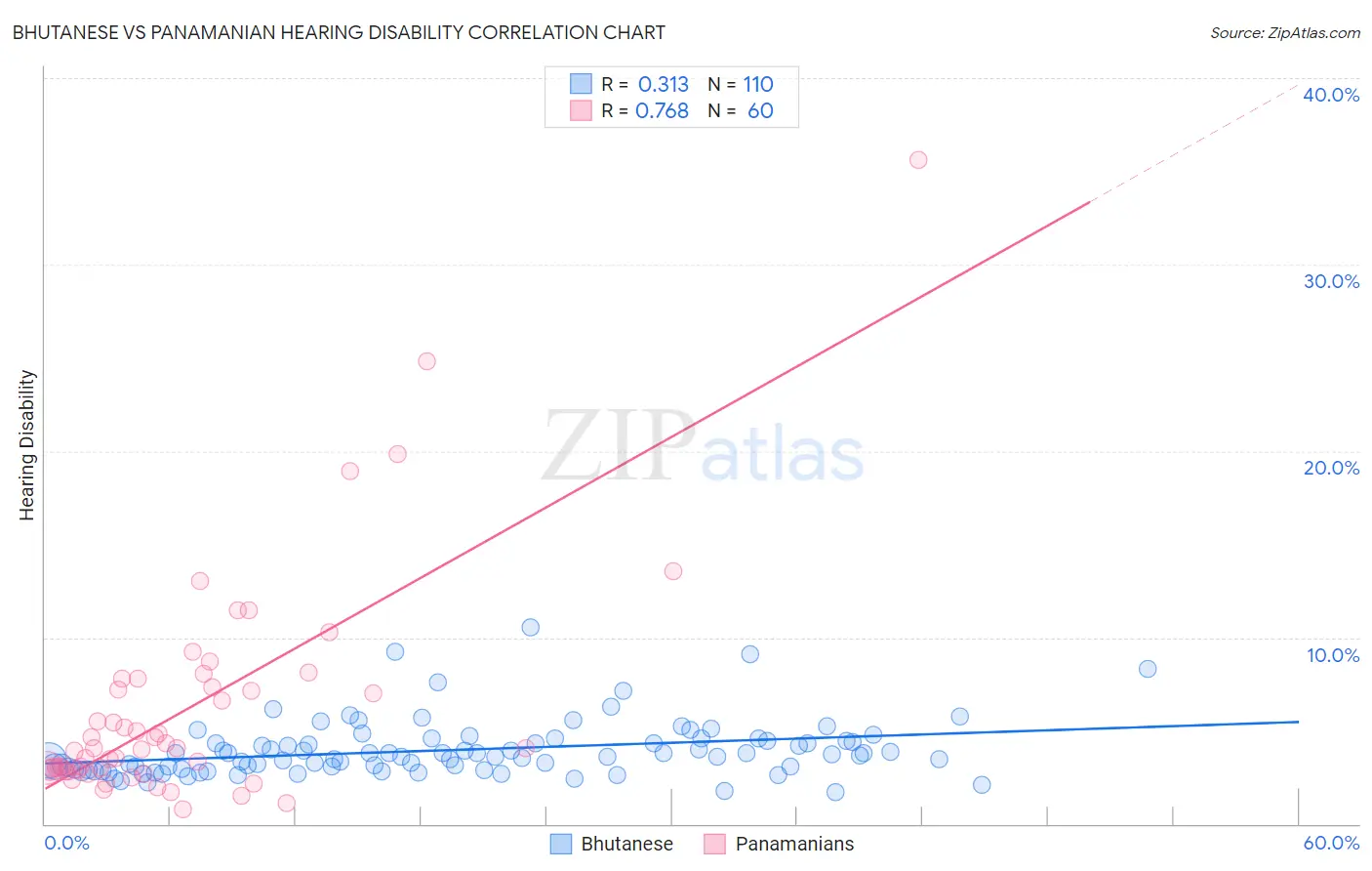 Bhutanese vs Panamanian Hearing Disability Correlation Chart