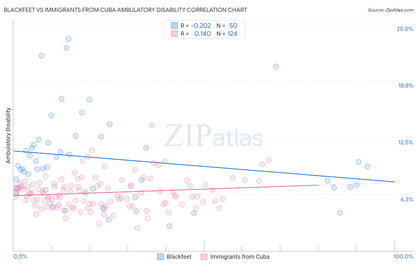 Blackfeet vs Immigrants from Cuba Ambulatory Disability Correlation Chart
